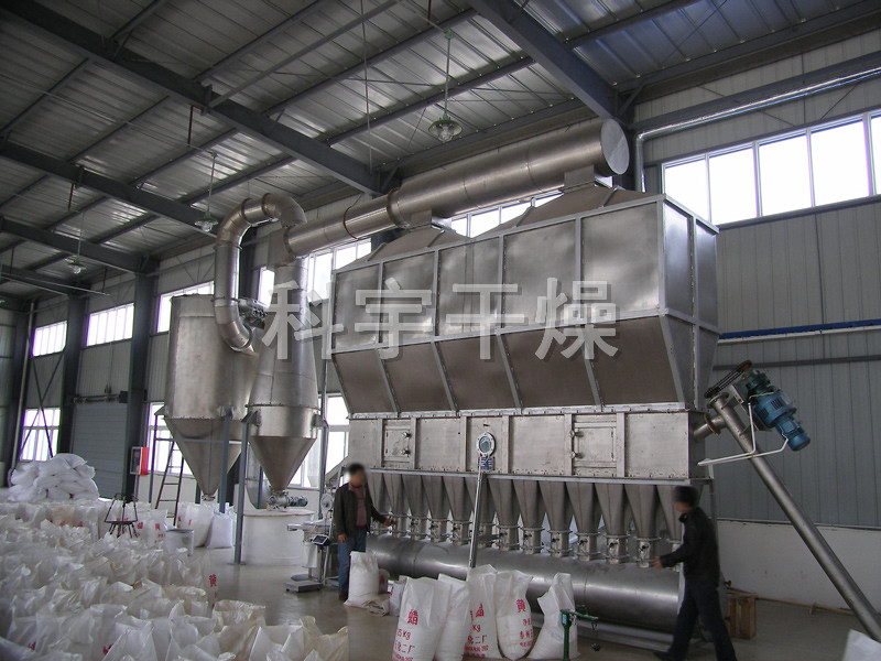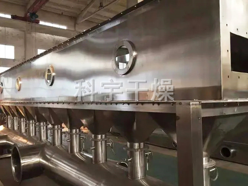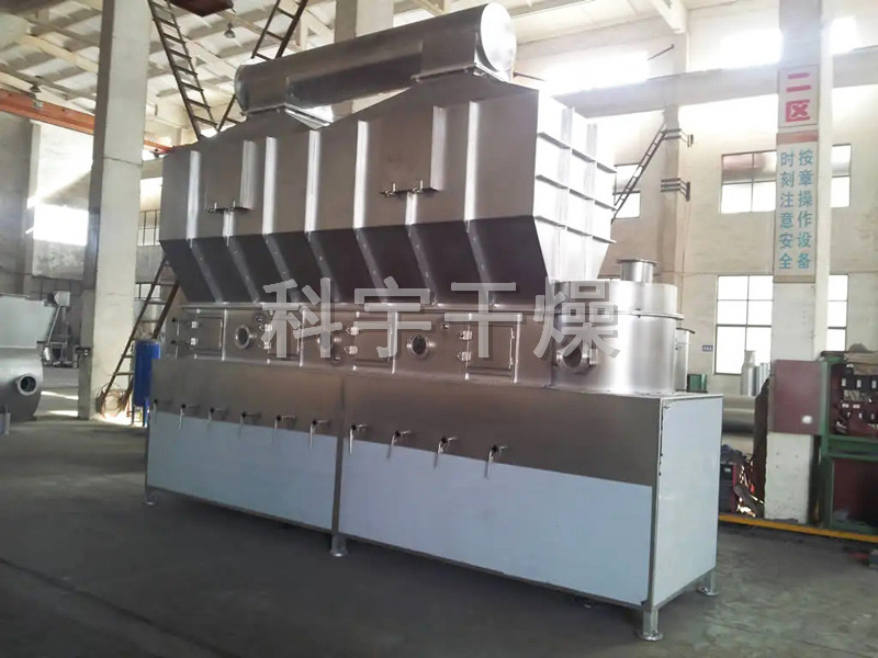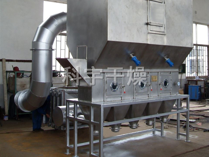 潔凈的熱風(fēng)經(jīng)閥板分配進(jìn)入床體內(nèi),從加料器進(jìn)入的濕物料被熱風(fēng)形成沸騰狀態(tài)。由于熱風(fēng)與物料廣泛接觸,增強(qiáng)了傳熱傳質(zhì)的過程,因此在較短時間內(nèi)就可干燥。如用連續(xù)型,物料從床體的一頭進(jìn)入,經(jīng)過幾十秒至幾分鐘沸騰干燥,自動從床體另一頭流出。本設(shè)備一般進(jìn)行負(fù)壓操作。