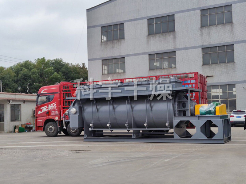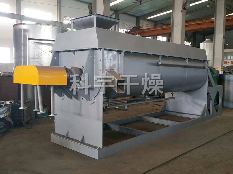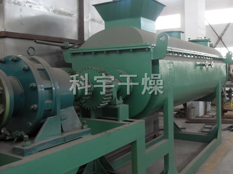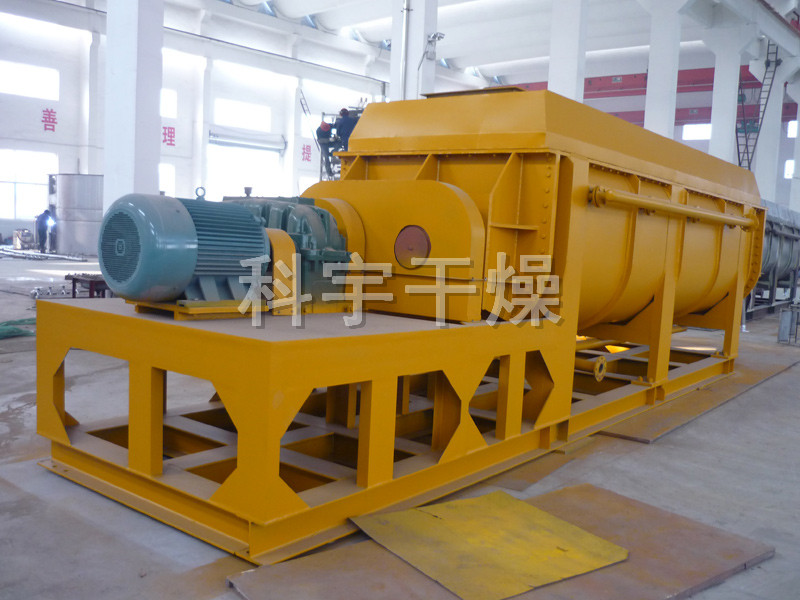 空心軸上密集排列著楔型中空漿葉,熱介質(zhì)經(jīng)空心軸流經(jīng)漿葉。單位有效容積內(nèi)傳熱面積很大,熱介質(zhì)溫度從-40℃到320℃,可以是水蒸汽,也可以是液體型:如熱水、導熱油等。間接傳導加熱,沒有攜帶空氣帶走熱量,熱量均用來加熱物料。熱量損失僅為通過器體保溫層向環(huán)境的散熱。楔型漿葉傳熱面具有自清潔功能。物料顆粒與楔型面的相對運動產(chǎn)生洗刷作用,能夠洗刷掉楔型面上附著物料,使運轉(zhuǎn)中一直保持著清潔的傳熱面。漿葉干燥機的殼體為Ω型,殼體內(nèi)一般安排二到四根空心攪拌軸。殼體有密封端蓋與上蓋,防止物料粉塵外泄而充分發(fā)揮作用。
