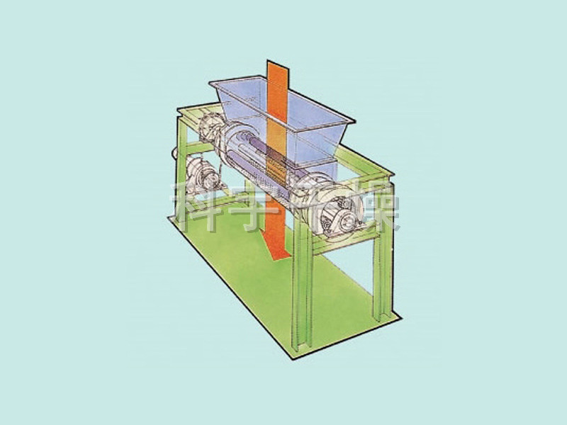 ◎水平擠出成型機(jī): 由加料斗、二根輥?zhàn)雍蚒形振動(dòng)網(wǎng)構(gòu)成。以增大物料的表面積為目的,造粒物料與振動(dòng)網(wǎng)接觸,由旋轉(zhuǎn)輥?zhàn)拥膹?qiáng)制壓力擠出網(wǎng)外,形成圓柱形的顆粒。