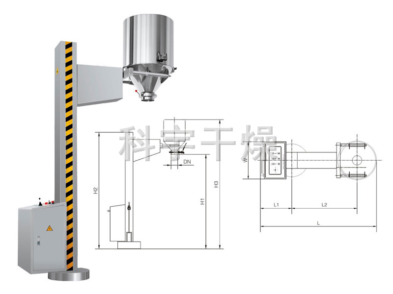 ??TJG 系列固定提升加料機(jī)由兩部分組成,即提升機(jī)及底座。提升機(jī)由機(jī)架、液壓提升系統(tǒng)及料門(mén)翻轉(zhuǎn)機(jī)構(gòu)組成。工作時(shí),先將提升機(jī)的料門(mén)與料桶扣合,啟動(dòng)提升操作桿,料門(mén)與料桶一起上升,啟動(dòng)翻轉(zhuǎn)操作桿,料桶即可番轉(zhuǎn)180度,呈底桶向上姿態(tài)并移動(dòng)到所需位置,利用料門(mén)上出料蝶閥,可很容易將物料加入所需的工藝設(shè)備中。