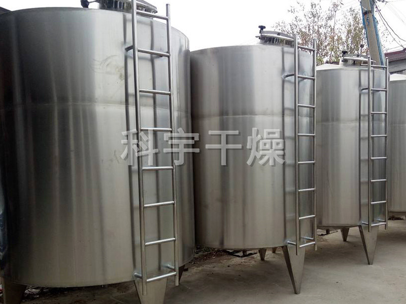 根據(jù)貯存能力不同由1000-15000L,貯罐能力在20000以上的貯罐,建議使用室外貯罐,貯罐使用SUS304不銹鋼制成,根據(jù)罐類設(shè)計(jì)要求可附帶裝置如下:攪拌器,進(jìn)、出料口,人孔,溫度計(jì),液位指示器,高、低液位報(bào)警孔,防蠅、防塵呼吸氣孔,計(jì)量器